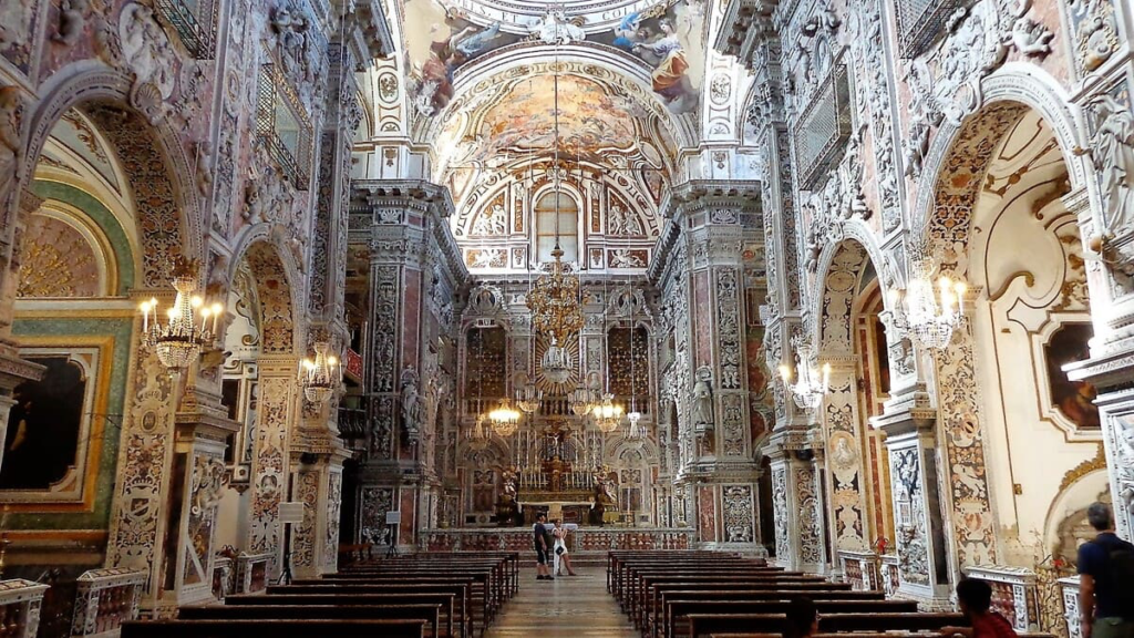 Die Kirche San Cataldo und die Chiesa Martorana, beide auf einer Terrasse an der Piazza Bellini gelegen. Die erste ist an den drei roten Kuppeln zu erkennen, die an den arabischen Einfluss erinnern, und ihr Inneres ist arm, aber dank des Sandsteins, aus dem es gebaut ist, schön. Die Kirche von Martorana hingegen ist byzantinischen Ursprungs und vollständig mit Dekorationen und Mosaiken bedeckt, die ihr eine unbestrittene Schönheit verleihen.